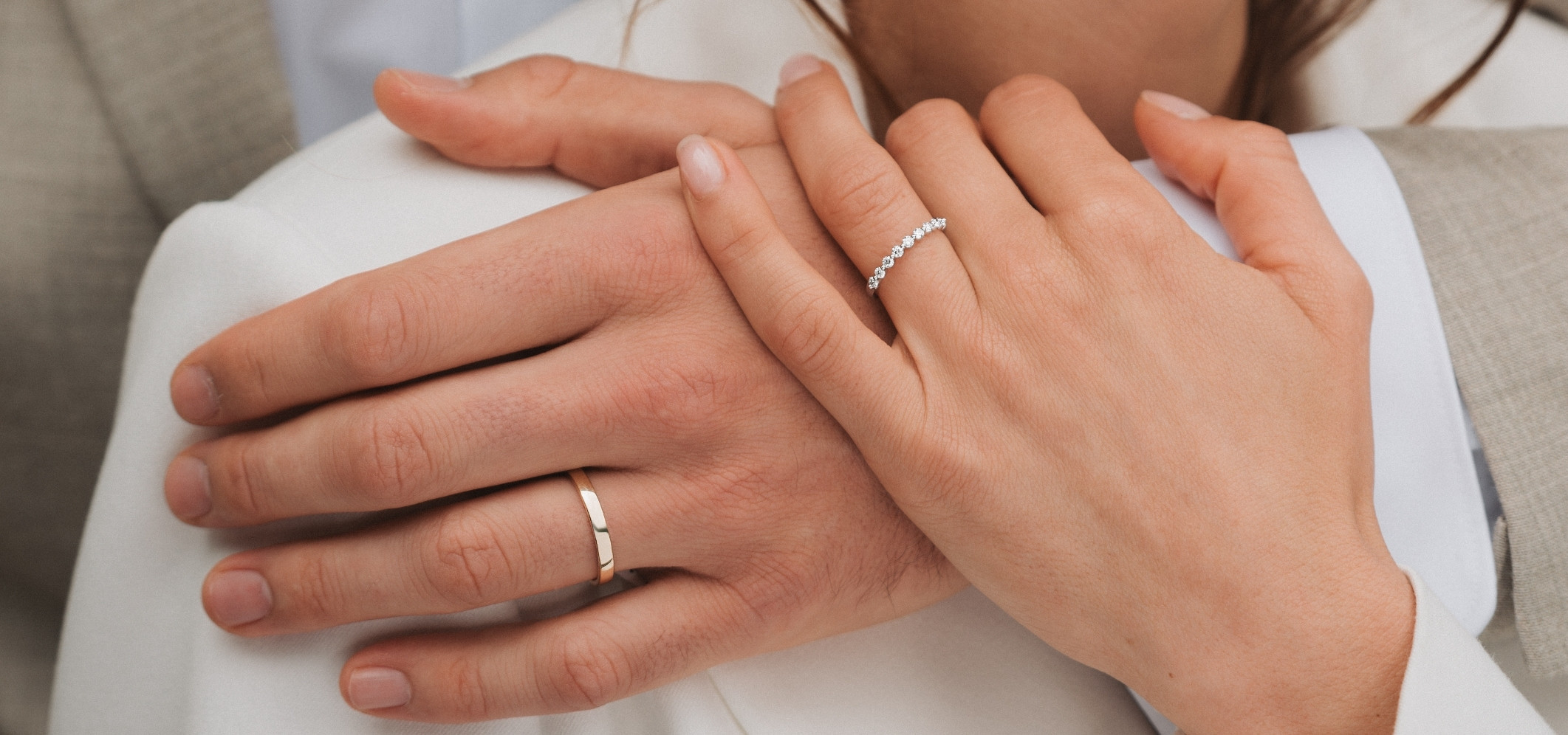 Prémisses half-set comfort wedding ring for men - Rose gold
