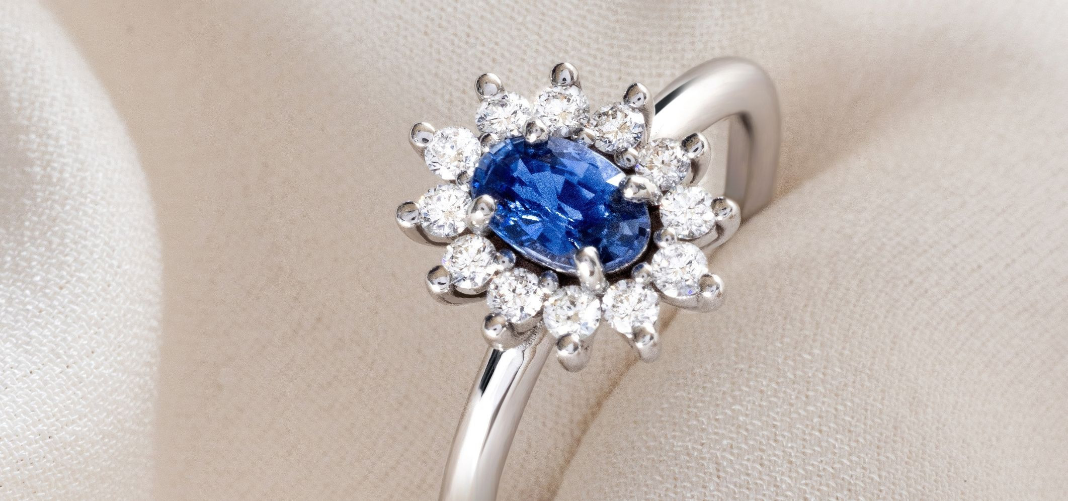Marguerite Ring - Sapphire and Diamonds - White gold