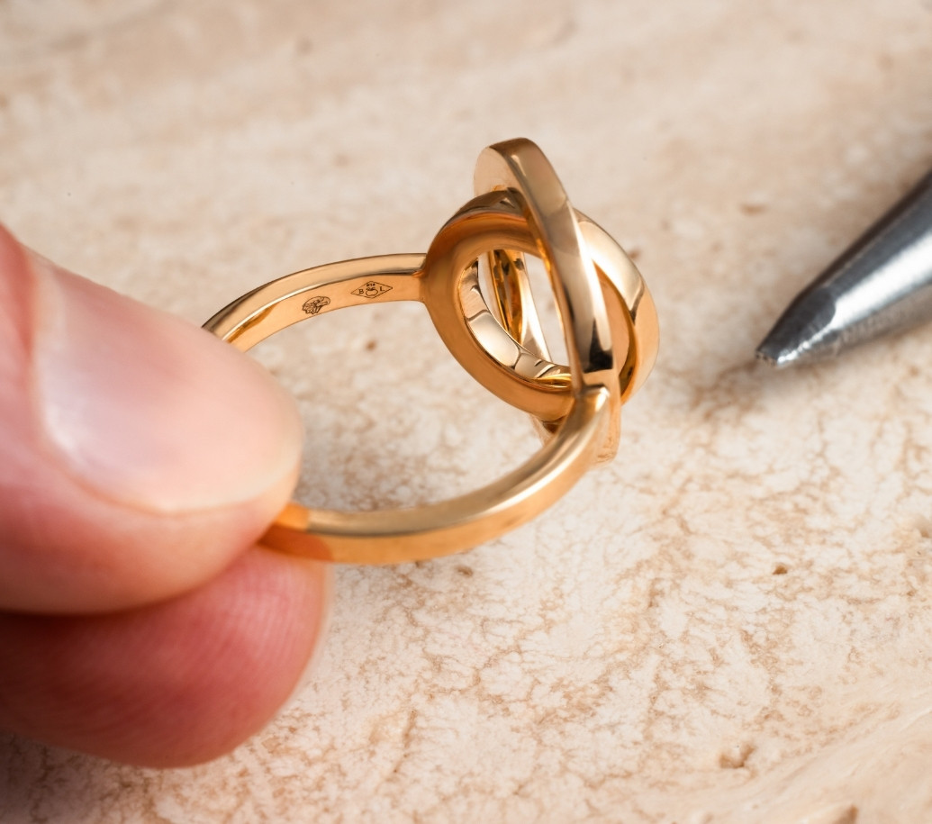 A hallmark is an impression engraved in the metal of a piece of jewellery, affixed using a specific tool or a mechanical system. It is visible to the naked eye, although its small size and discreet location make it difficult to see with the naked eye.