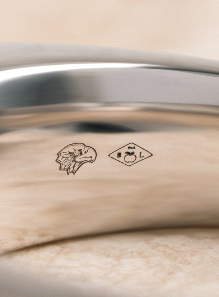 The hallmarks are carefully placed, in areas that are not exposed to much wear, in order to preserve both their legibility and the aesthetic line of the jewel.