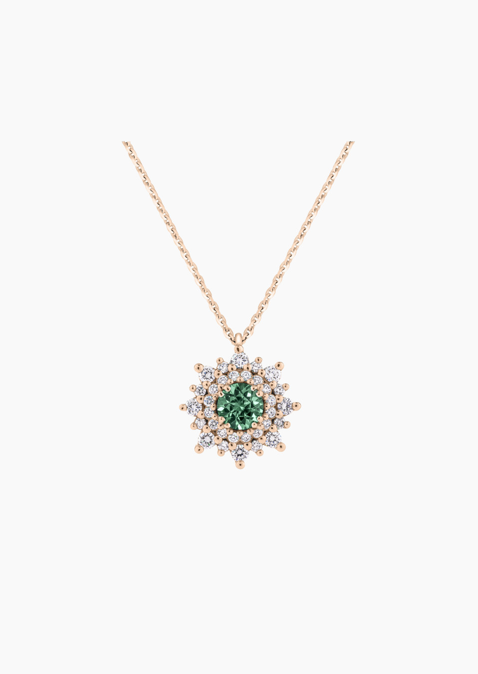 Dentelle necklace in rose gold, green sapphire and diamonds