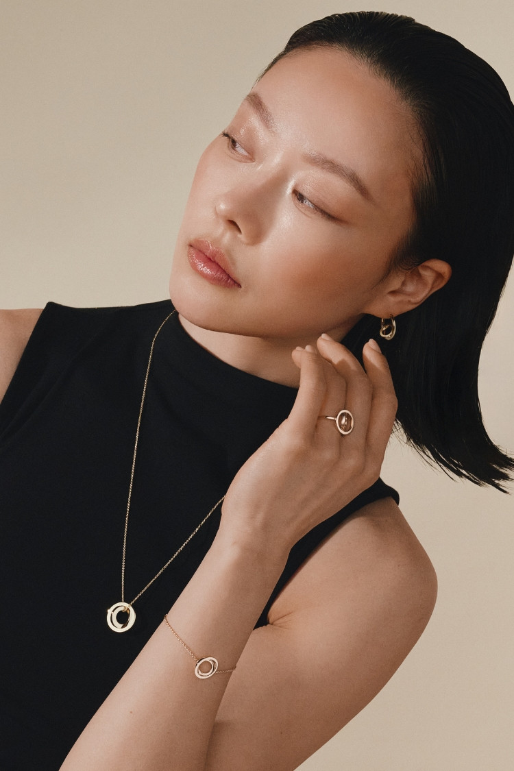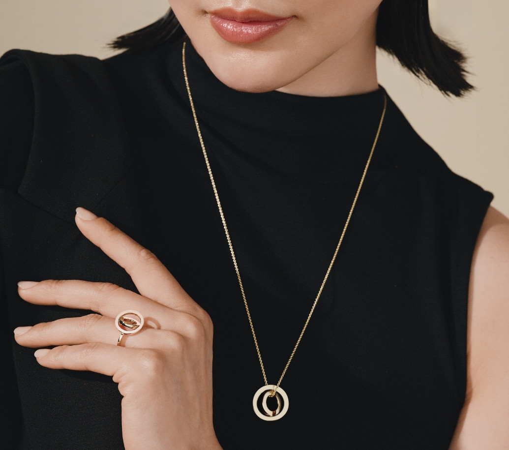 In the gentle glow of yellow gold, the Alba Necklace traces a silent dance: two interlaced circles in perfect balance, evoking the meeting of two breaths, two souls, two lights joined in a single radiant harmony.