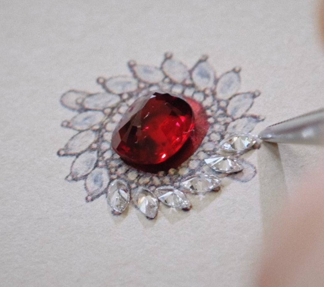It all begins with the inspiration of a ruby — a stone of passion — whose encounter with gold gives life first to the sketch, then to the 3D model. Then comes the magic of the workshop: casting, polishing, setting — each gesture reveals the beauty of the material. Finally, the finished piece bears the Maison’s hallmark and is ready to begin its own story in the hands of the one who will wear it.