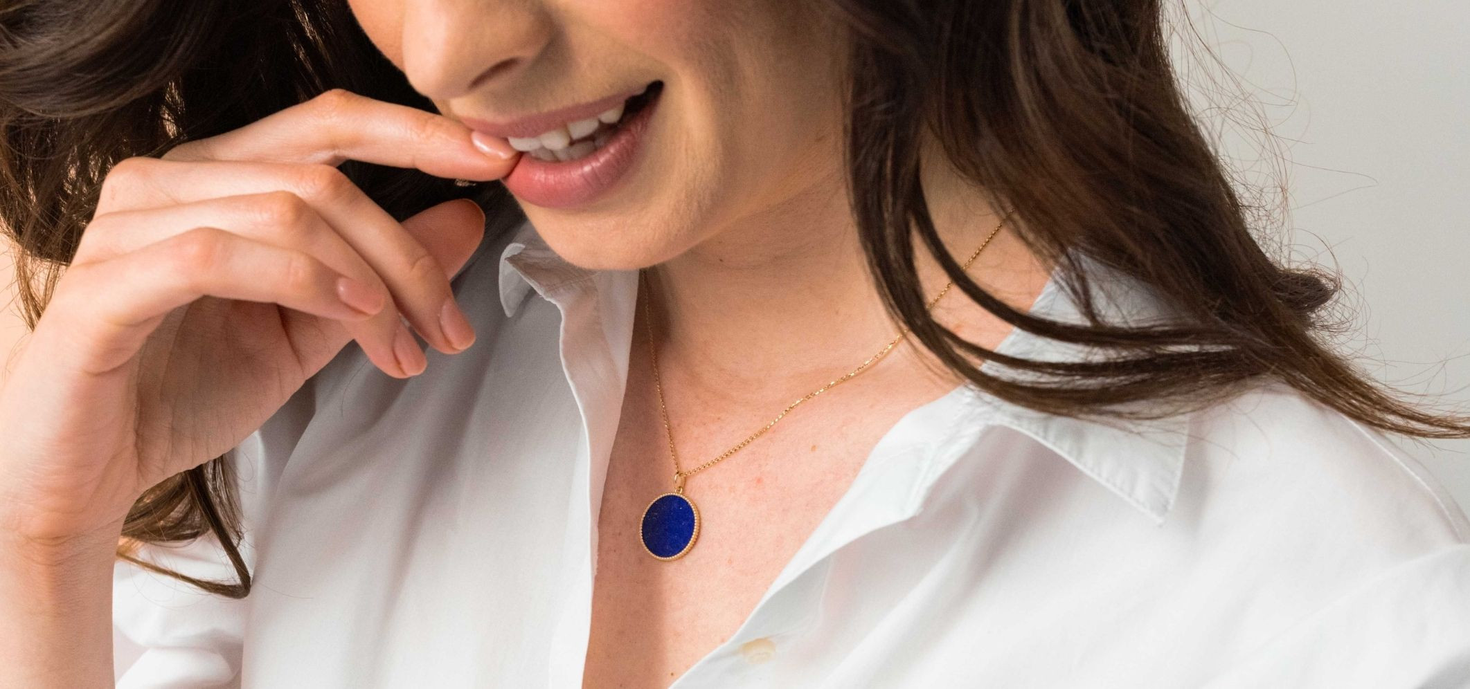 Médaille Colette Lune Perlée - Lapis lazuli - Or jaune