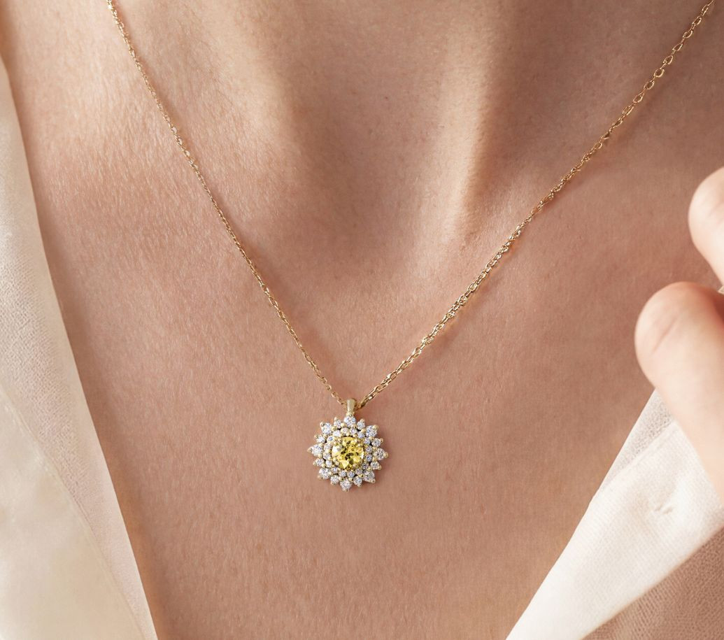 Le collier Dentelle dévoile un saphir jaune éclatant, comme une lumière délicatement posée au creux du cou. Autour de lui, un motif ajouré finement travaillé évoque la légèreté d’une dentelle précieuse, laissant circuler la lumière avec subtilité. Les diamants viennent ponctuer l’ensemble d’éclats discrets, soulignant chaque contour sans jamais en altérer la finesse. À la fois lumineux et délicat, ce bijou capture l’attention avec naturel, dans un équilibre parfait entre raffinement et spontanéité. Dans l’univers Coquette, il incarne une élégance vivante, faite pour accompagner les moments qui comptent. Un cadeau idéal pour célébrer un instant précieux ou marquer un souvenir lumineux.